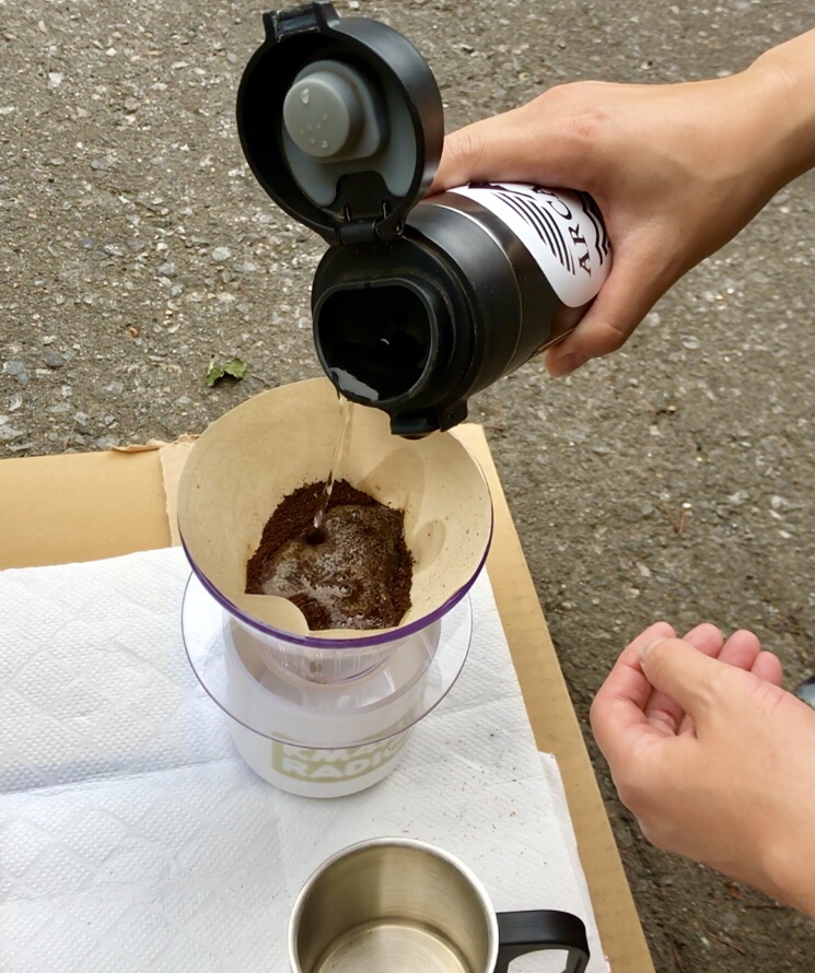 今回は登る時間が短い山だったので水筒にお湯を入れてドリップ。
