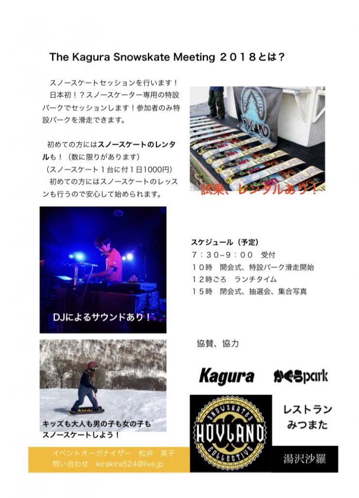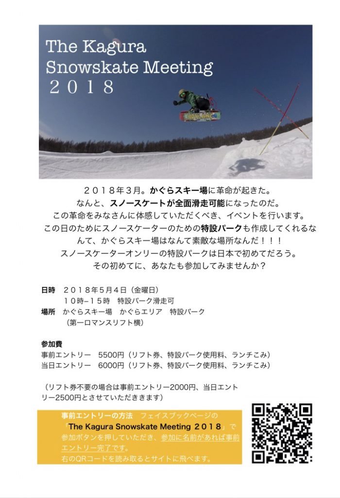 The Kagura Snowskate Meeting 2018 フェイスブックページで事前の参加表明にて、500円安くなります!