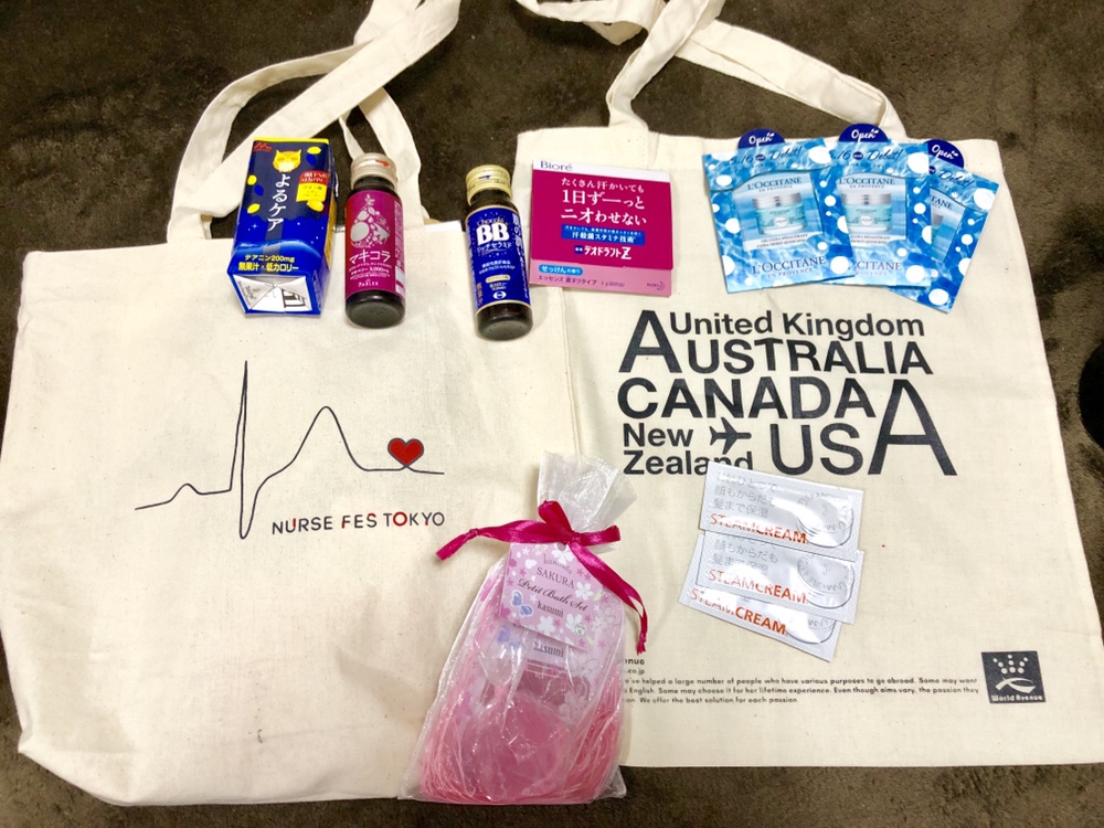 何するのかなー、って思ったら看護師さん対象でトークショーがあったり、いろんなメーカーさんの体験会、試食会があったり、お土産たくさんもらえたり、って。