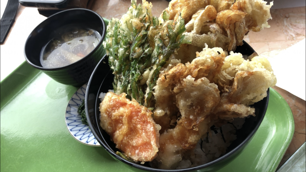 旦那さんは舞茸天丼を私は舞茸ご飯にきのこ汁。