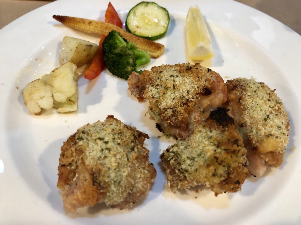 旦那さんのメインディッシュは鶏肉のハーブパン粉焼きです。